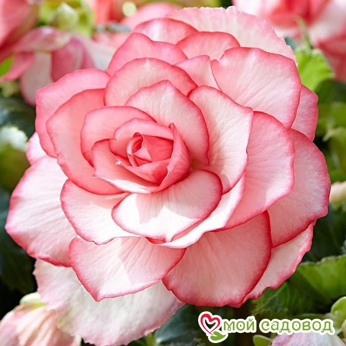 Бегония Бутон де Роуз — гибридная бегония с великолепными розовидными цветами, кустовая, клубневая. Компактный куст до 25 см высотой, со светло-зелеными листьями. Цветки крупные, махровые, белоснежные с ярко-малиновой каймой, 15-18 см диаметром. Бегония любит рыхлый питательный грунт со слабокислой реакцией. Оптимальная схема посадки 20х30 см.Сделайте дренаж. Поливайте регулярно и умеренно. Раз в месяц подкармливайте минеральным удобрением. В период покоя обеспечьте прохладную зимовку. Чтобы растения зацвели к началу лета, посев на рассаду делают в январе-марте. Заделка не требуется. Просто равномерно распределите по рыхлому торфяному субстрату.